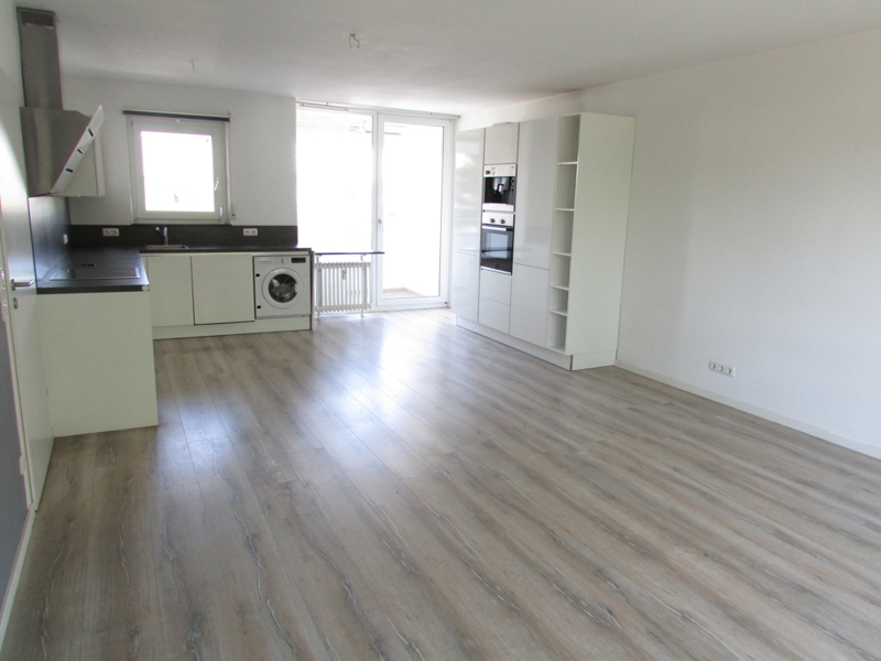 großen offenen Wohn-/Essbereich (ca. 32m²) mit hochwertiger integrierter Einbauküche fortsetzt. Diese ist bereits im Kaufpreis enthalten (!). Die Ausstattung wurde durchgehend hell und modern gewählt. Hier fällt besonders das geschmackvolle Laminat ins Auge und auch die übrigen Räumlichkeiten entsprechen diesem Stil. Die Loggia bietet genügend Platz für eine gemütliche Sitzecke um zu relaxen. Das helle Tageslichtbad ist zweckmäßig und mit schicken Sanitärobjekten ausgestattet, ebenso das separate WC. Zudem gibt es noch drei weitere Zimmer und genügend Platz für Schlafräume, Homeoffice, Gästezimmer etc.